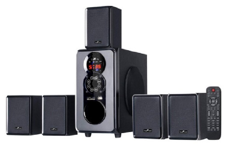 Enjoy the ultimate home theater experience with beFree Sounds 5.1 Channel Surround Sound Bluetooth Speaker System. This speaker system is designed with sophistication, featuring a sleek look and smooth sound. With Bluetooth, USB, SD and FM radio capability, the system offers the best possible listening options for your enjoyment.